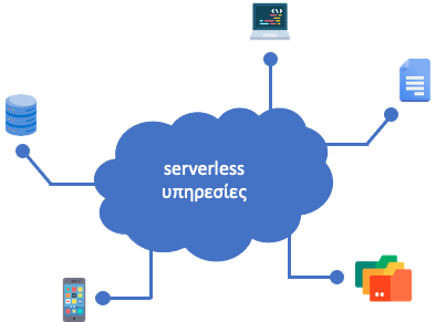 Οι serverless υπηρεσίες νέφους έχουν αρχίσει να διαδίδονται πολύ τα τελευταία χρόνια. Όπως φαίνεται και στην παραπάνω εικόνα, βασίζονται στην ιδέα πως ο χρήστης δεν χρησιμοποιεί κάποιο συγκεκριμένο απομακρυσμένο υπολογιστή ή εικονικό μηχάνημα (virtual machine – VM) για να εκτελέσει μια εργασία. Αντίθετα, μπορεί να επικεντρώνεται στην ανάπτυξη λογισμικού, δόμηση μιας βάσης δεδομένων, αποθήκευση αρχείων, εκτέλεση / ανάπτυξη εφαρμογών, ενώ ο υπολογιστής για την εκτέλεση αυτών αποφασίζεται από τον πάροχο της υπηρεσίας.